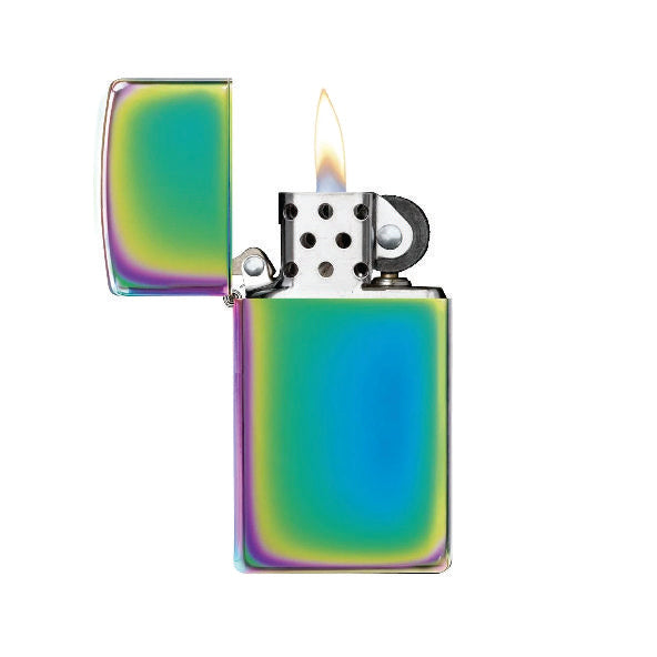 Una versión más pequeña de nuestro clásico encendedor a prueba de viento. Este encendedor Slim ® Multi Color es fácil de colocar en su bolsillo, bolso o cartera. Este encendedor también está disponible en un estuche Classic . Viene empaquetado en una caja de regalo. Para un rendimiento óptimo, llene con combustible para encendedor Zippo .