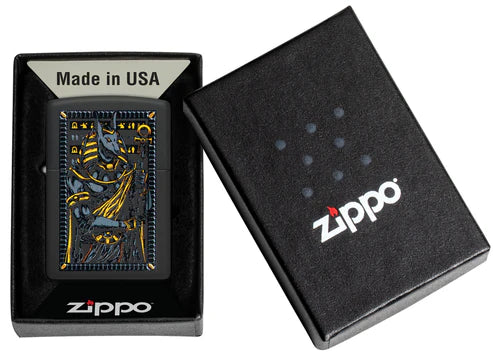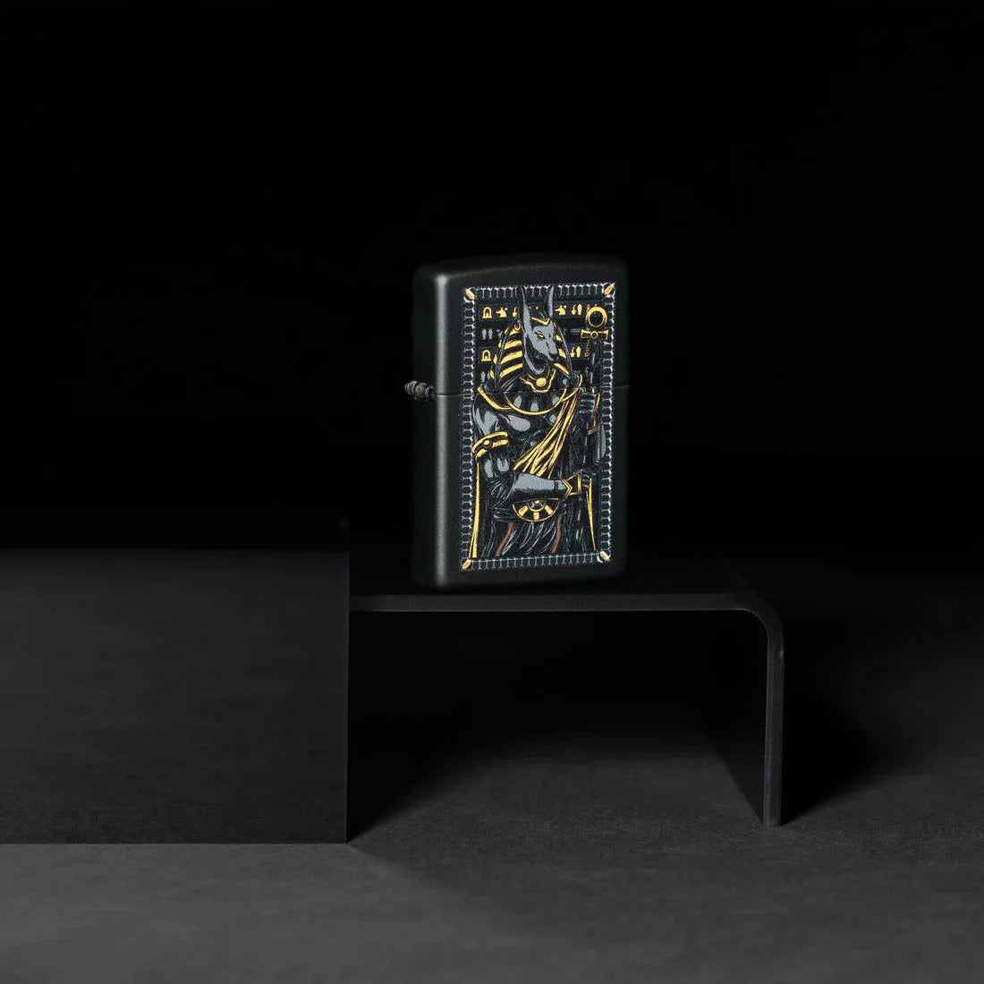 Conocido como el protector de las tumbas y el más allá, el dios egipcio Anubis aparece en este encendedor clásico negro mate con un diseño audaz y misterioso de Color Image. Viene empaquetado en una caja de regalo. Para un rendimiento óptimo, llénelo con combustible para encendedores Zippo.