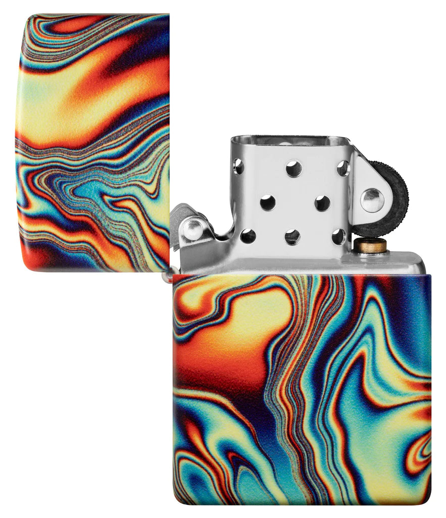 Al estilo de la pintura vertida, este fascinante encendedor de 540 colores está envuelto a la perfección por capa tras capa de color deslumbrante. Todo el diseño brilla en la oscuridad gracias a nuestro acabado patentado Glow-in-the-Dark. Viene empaquetado en una caja de regalo. Para un rendimiento óptimo, rellene con combustible para encendedores Zippo.