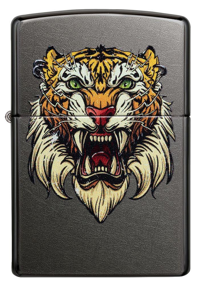 Aunque se han extinguido durante casi 12.000 años, puedes llevarte a casa este gato de colmillos largos con este diseño de tatuaje de dientes de sable. La imagen del color en un encendedor gris es el feroz Tigre Dientes de Sable, ilustrado para que parezca que está listo para ser entintado en la piel. Viene empaquetado en una caja de regalo. Para un rendimiento óptimo, llene con combustible para encendedor Zippo.